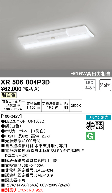ODELIC ¥ª¡¼¥Ç¥ê¥Ã¥¯ Èó¾ïÅô¡¦Í¶Æ³Åô XR506004P3D
