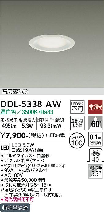 DAIKO Âç¸÷Åŵ¡ ¥À¥¦¥ó¥é¥¤¥È DDL-5338AW