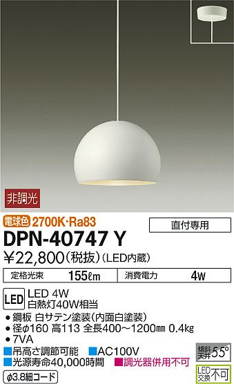 DAIKO Âç¸÷Åŵ¡ ¾®·¿¥Ú¥ó¥À¥ó¥È DPN-40747Y