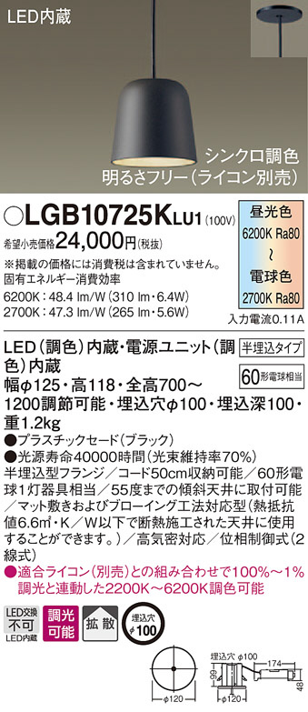 Panasonic ¥Ú¥ó¥À¥ó¥È LGB10725KLU1