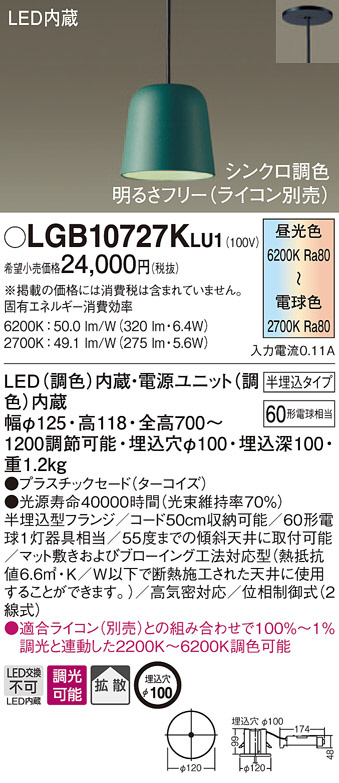 Panasonic ¥Ú¥ó¥À¥ó¥È LGB10727KLU1
