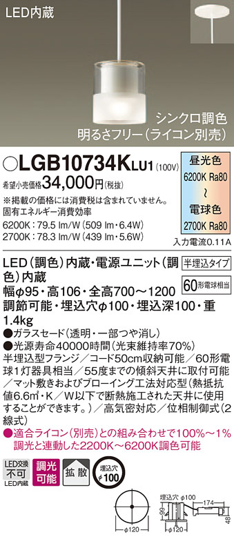 Panasonic ¥Ú¥ó¥À¥ó¥È LGB10734KLU1