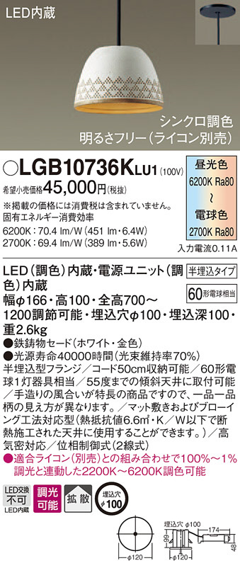 Panasonic ¥Ú¥ó¥À¥ó¥È LGB10736KLU1