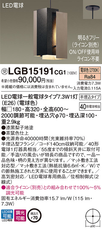 Panasonic ¥Ú¥ó¥À¥ó¥È LGB15191CG1