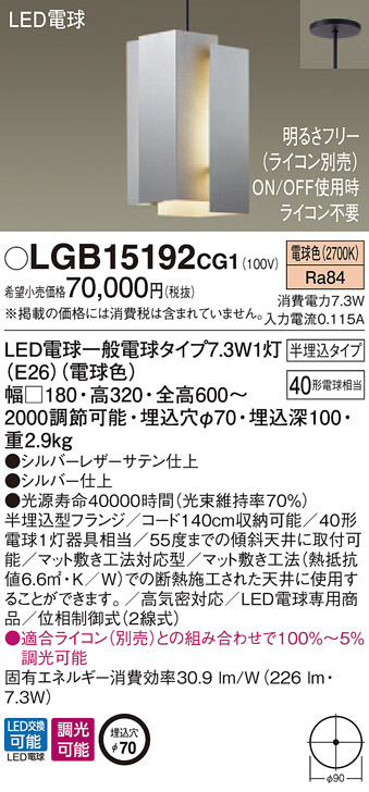 Panasonic ¥Ú¥ó¥À¥ó¥È LGB15192CG1