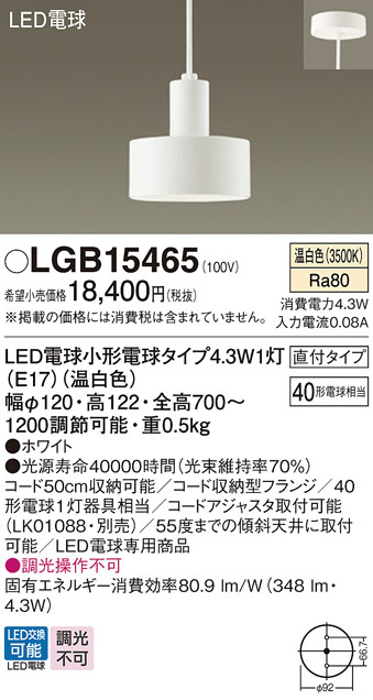 Panasonic ¥Ú¥ó¥À¥ó¥È LGB15465