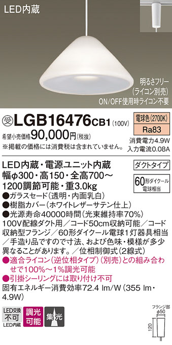 Panasonic ¥Ú¥ó¥À¥ó¥È LGB16476CB1