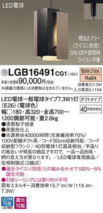 Panasonic ¥Ú¥ó¥À¥ó¥È LGB16491CG1