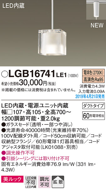 Panasonic LED ¥Ú¥ó¥À¥ó¥È¥é¥¤¥È LGB16741LE1