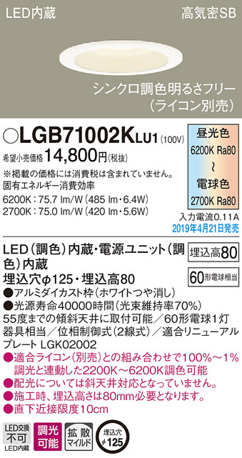 Panasonic LED ¥À¥¦¥ó¥é¥¤¥È LGB71002KLU1