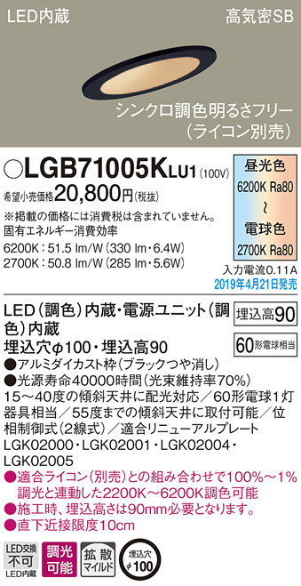Panasonic LED ¥À¥¦¥ó¥é¥¤¥È LGB71005KLU1