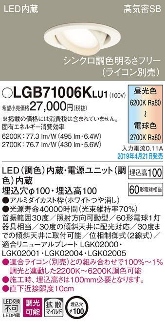 Panasonic LED ¥À¥¦¥ó¥é¥¤¥È LGB71006KLU1
