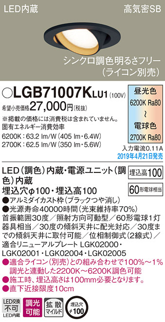 Panasonic LED ¥À¥¦¥ó¥é¥¤¥È LGB71007KLU1