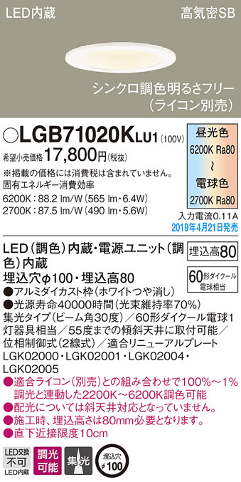 Panasonic LED ¥À¥¦¥ó¥é¥¤¥È LGB71020KLU1