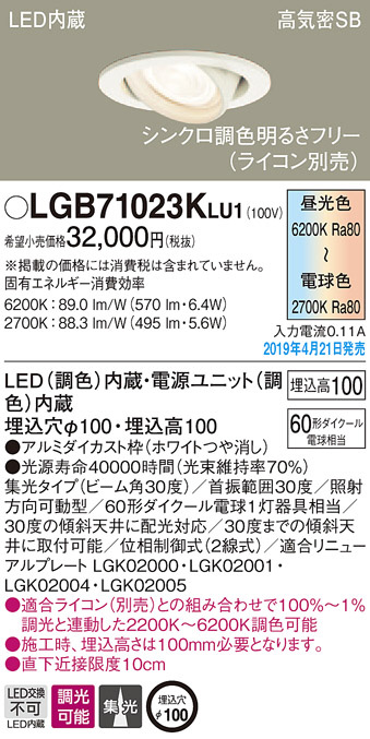 Panasonic LED ¥À¥¦¥ó¥é¥¤¥È LGB71023KLU1