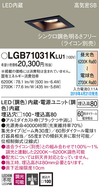 Panasonic LED ¥À¥¦¥ó¥é¥¤¥È LGB71031KLU1