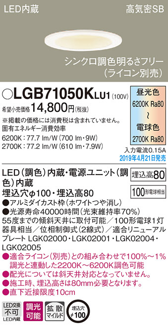 Panasonic LED ¥À¥¦¥ó¥é¥¤¥È LGB71050KLU1