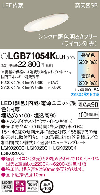 Panasonic LED ¥À¥¦¥ó¥é¥¤¥È LGB71054KLU1
