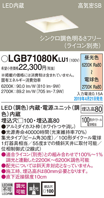 Panasonic LED ¥À¥¦¥ó¥é¥¤¥È LGB71080KLU1