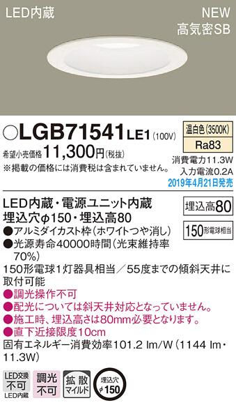 Panasonic LED ¥À¥¦¥ó¥é¥¤¥È LGB71541LE1