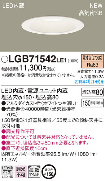 Panasonic LED ¥À¥¦¥ó¥é¥¤¥È LGB71542LE1