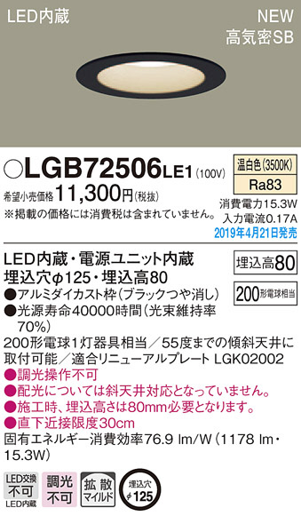 Panasonic LED ¥À¥¦¥ó¥é¥¤¥È LGB72506LE1