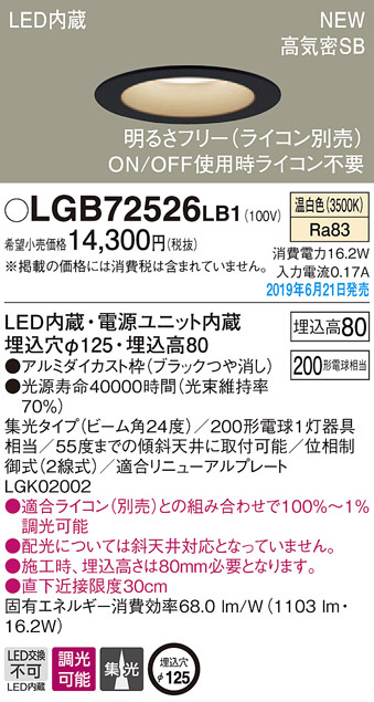 Panasonic LED ¥À¥¦¥ó¥é¥¤¥È LGB72526LB1