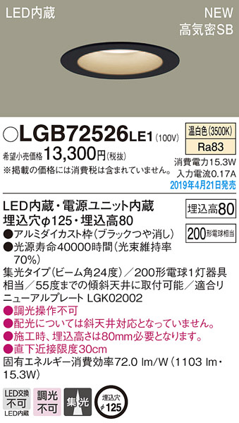 Panasonic LED ¥À¥¦¥ó¥é¥¤¥È LGB72526LE1