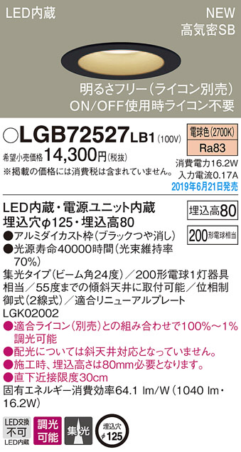 Panasonic LED ¥À¥¦¥ó¥é¥¤¥È LGB72527LB1