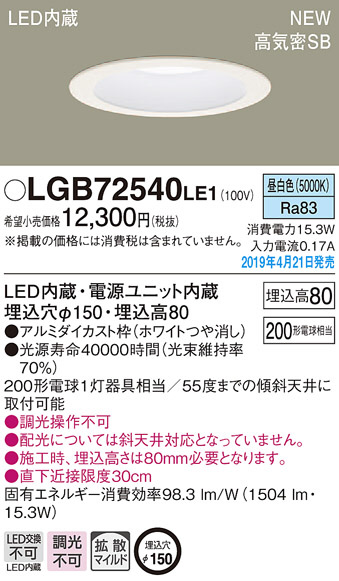 Panasonic LED ¥À¥¦¥ó¥é¥¤¥È LGB72540LE1