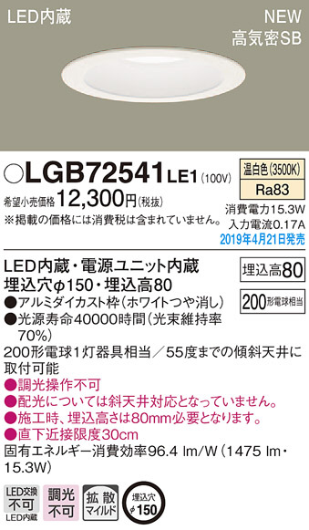 Panasonic LED ¥À¥¦¥ó¥é¥¤¥È LGB72541LE1