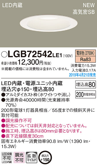 Panasonic LED ¥À¥¦¥ó¥é¥¤¥È LGB72542LE1