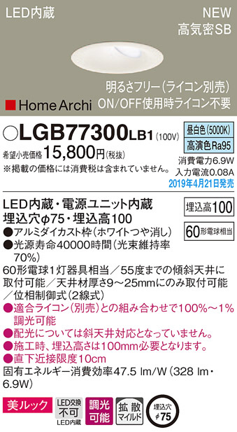 Panasonic LED ¥À¥¦¥ó¥é¥¤¥È LGB77300LB1