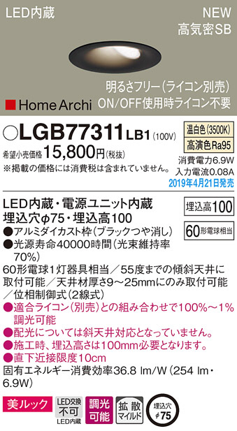 Panasonic LED ¥À¥¦¥ó¥é¥¤¥È LGB77311LB1