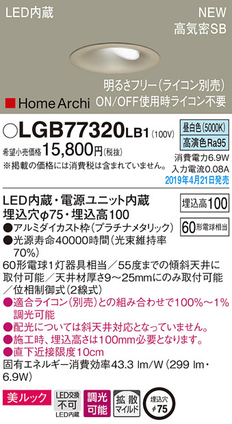 Panasonic LED ¥À¥¦¥ó¥é¥¤¥È LGB77320LB1