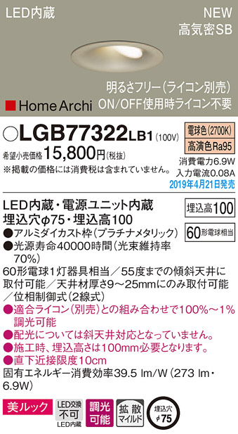 Panasonic LED ¥À¥¦¥ó¥é¥¤¥È LGB77322LB1