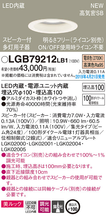 Panasonic LED ¥À¥¦¥ó¥é¥¤¥È LGB79212LB1