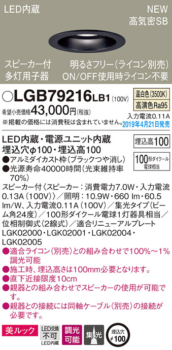 Panasonic LED ¥À¥¦¥ó¥é¥¤¥È LGB79216LB1