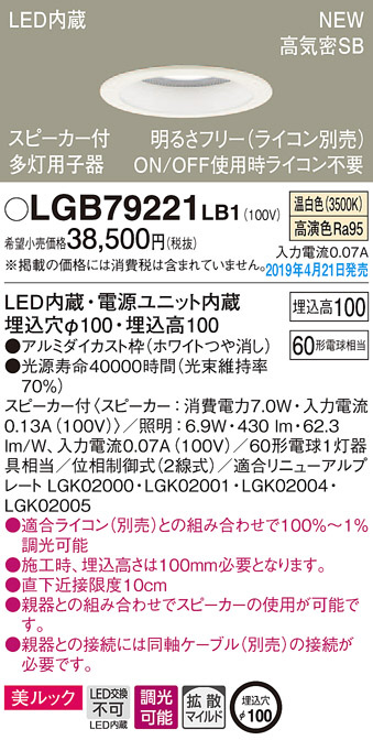 Panasonic LED ¥À¥¦¥ó¥é¥¤¥È LGB79221LB1