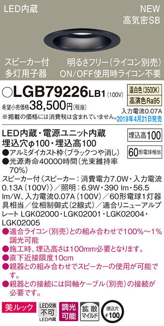 Panasonic LED ¥À¥¦¥ó¥é¥¤¥È LGB79226LB1