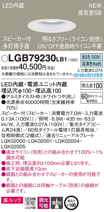 Panasonic LED ¥À¥¦¥ó¥é¥¤¥È LGB79230LB1