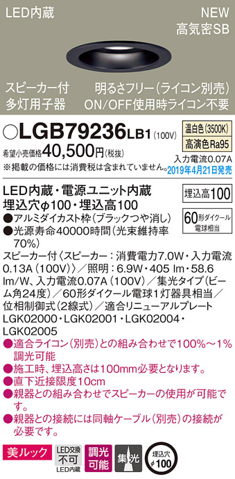 Panasonic LED ¥À¥¦¥ó¥é¥¤¥È LGB79236LB1