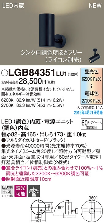 Panasonic LED ¥¹¥Ý¥Ã¥È¥é¥¤¥È LGB84351LU1