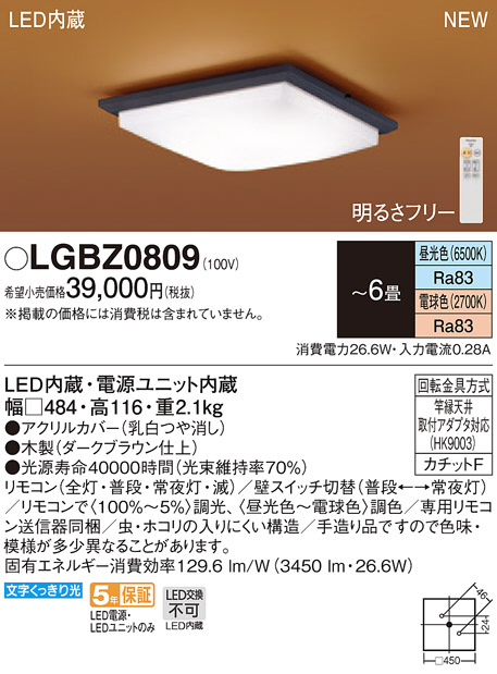 Panasonic LED ¥·¡¼¥ê¥ó¥°¥é¥¤¥È LGBZ0809