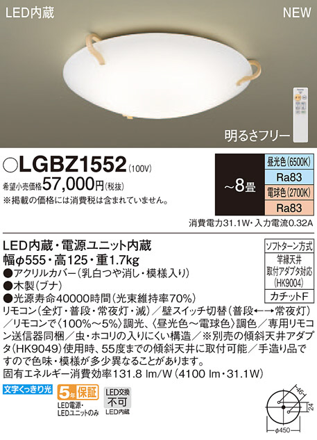 Panasonic LED ¥·¡¼¥ê¥ó¥°¥é¥¤¥È LGBZ1552