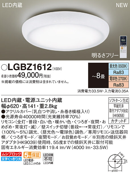 Panasonic LED ¥·¡¼¥ê¥ó¥°¥é¥¤¥È LGBZ1612