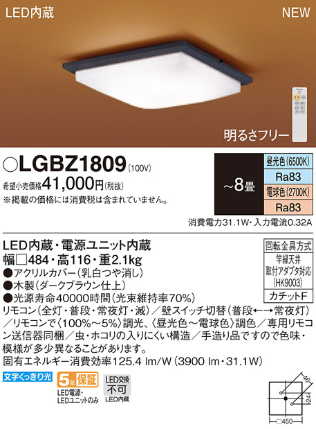 Panasonic LED ¥·¡¼¥ê¥ó¥°¥é¥¤¥È LGBZ1809