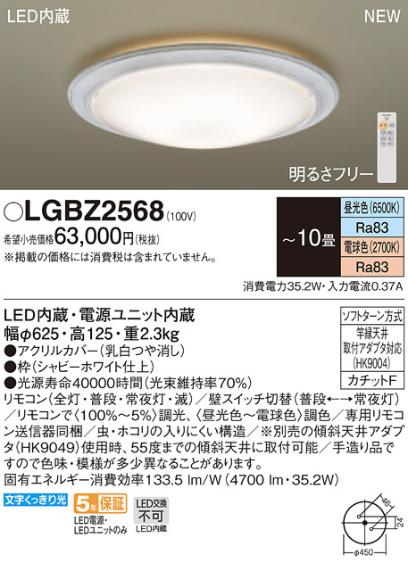 Panasonic LED ¥·¡¼¥ê¥ó¥°¥é¥¤¥È LGBZ2568