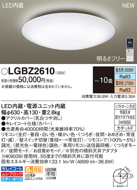 Panasonic LED ¥·¡¼¥ê¥ó¥°¥é¥¤¥È LGBZ2610
