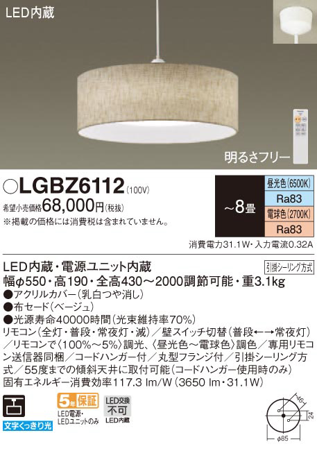 Panasonic ¥Ú¥ó¥À¥ó¥È LGBZ6112